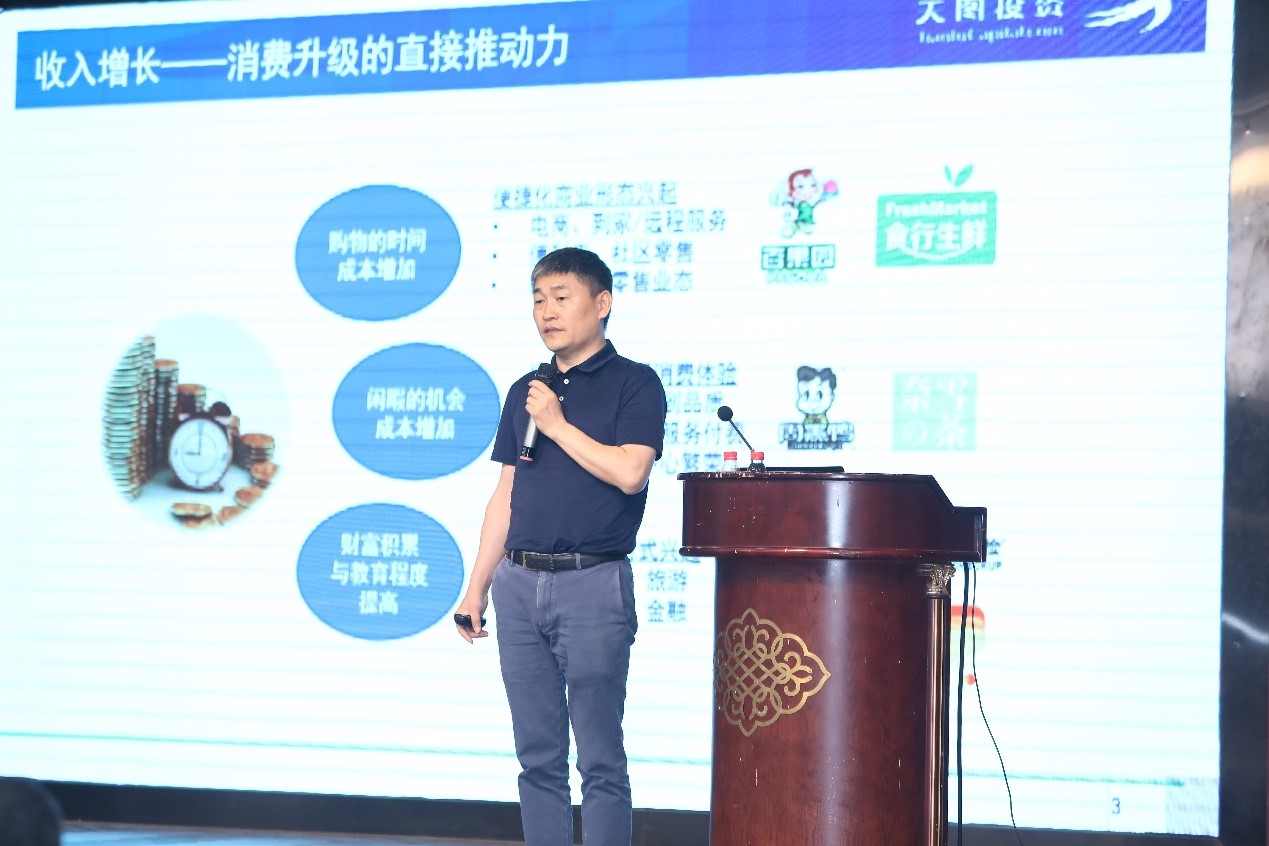 冯卫东分享了天图投资是如何利用收入增长这一趋势变量对投资进行指导,并从品类分析、品牌价值、团队能力三个维度介绍了成功的消费品牌需要具备的要素。