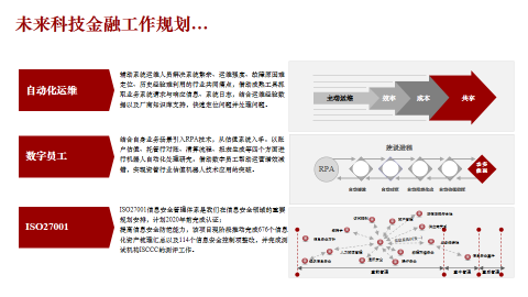 第三,信息安全系统建设,ISO27001信息安全管理体系是信息安全领域重要规划安排,该项目现阶段推动完成了676个信息化资产梳理的汇总以及114个信息安全控制项的整改。目前已经基本完成中国网络安全审查技术与认证中心的评测工作,预计在2020年内完成认证。