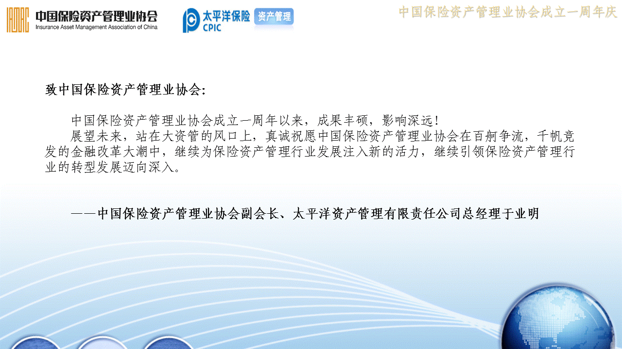 协会周年寄语——中国保险资产管理业协会副会长、太平洋资产管理有限责任公司总经理于业明