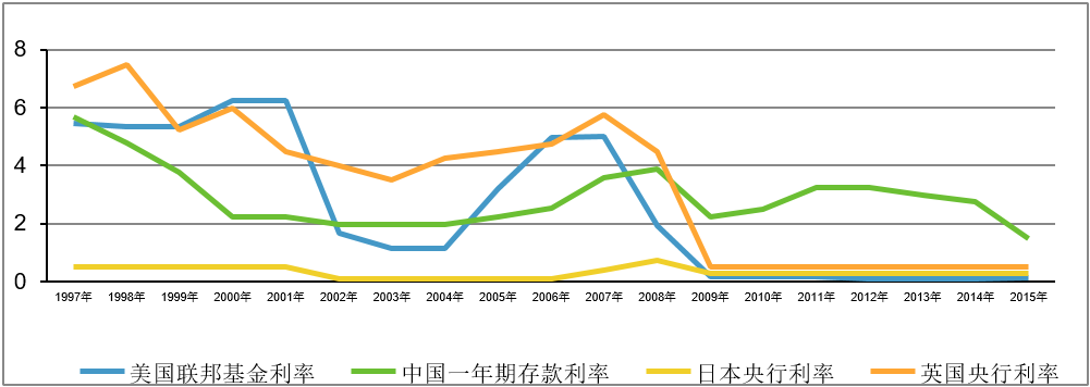 图1 1997年-2015年世界主要国家利率走势