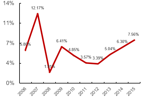 图5 2006年-2015年保险资金投资收益率
