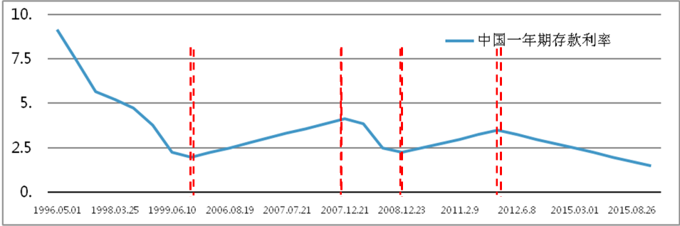 图2 1996年-2015年中国基准利率变动