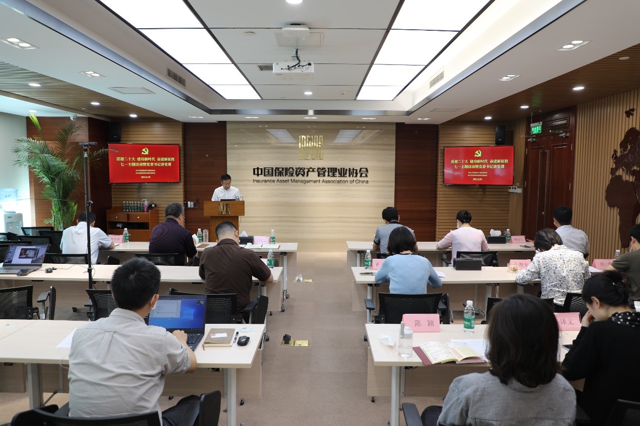 在七一来临之际,中国保险资产管理业协会和中国精算师协会联合党委(以下简称“联合党委”)召开“喜迎二十大 建功新时代 奋进新征程”七一主题座谈会暨党委书记讲党课。联合党委书记、中国保险资产管理业协会执行副会长兼秘书长曹德云同志出席活动并发言,联合党委委员、中国保险资产管理业协会副会长贺竹君同志主持会议。联合党委委员、两家协会班子成员、全体正式党员、预备党员及入党积极分子参加了本次活动。