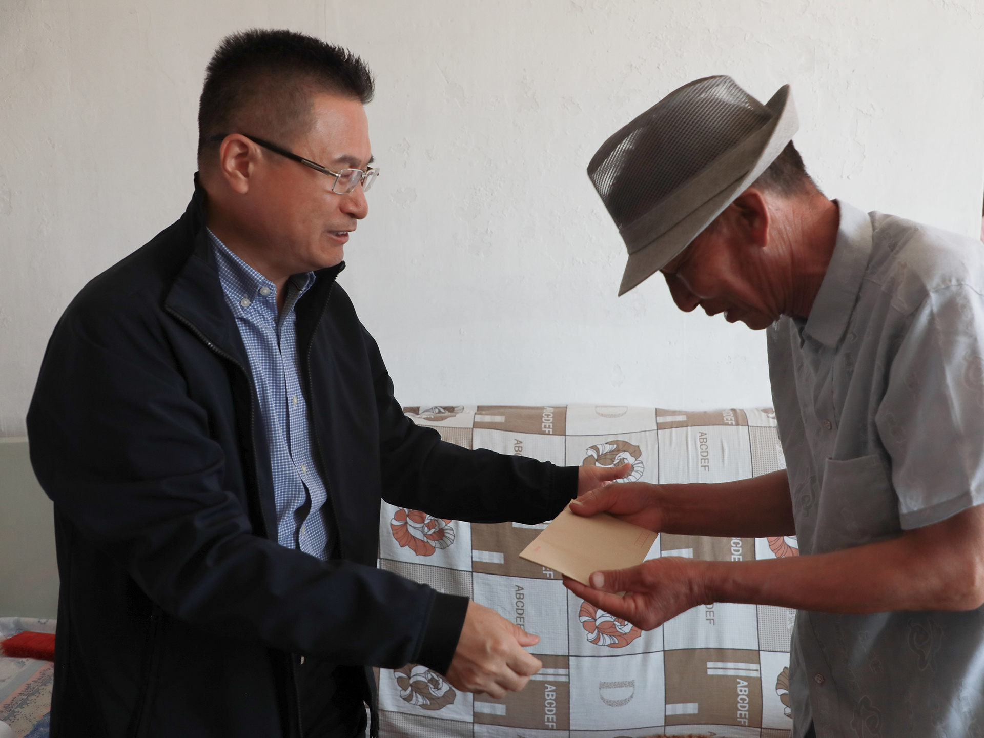 在困难群众巴特尔家中,联合党委中心组与巴特尔进行了深入交谈,详细了解了他的身体状况、家庭经济情况以及面临的实际困难,并送上慰问金和粮油等生活用品。