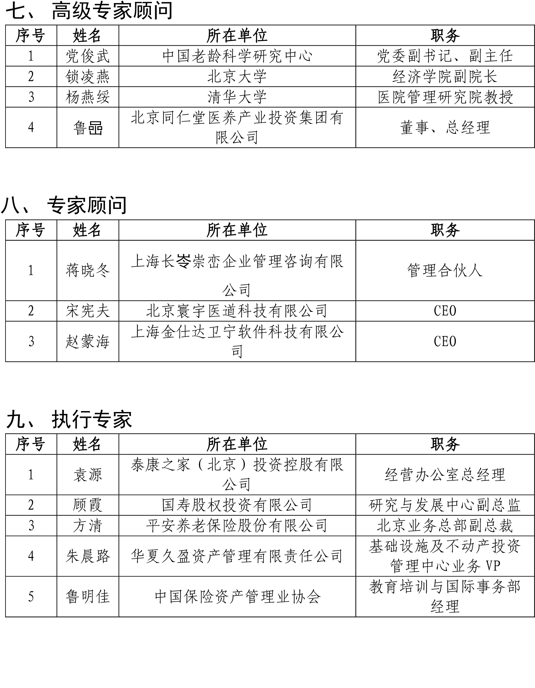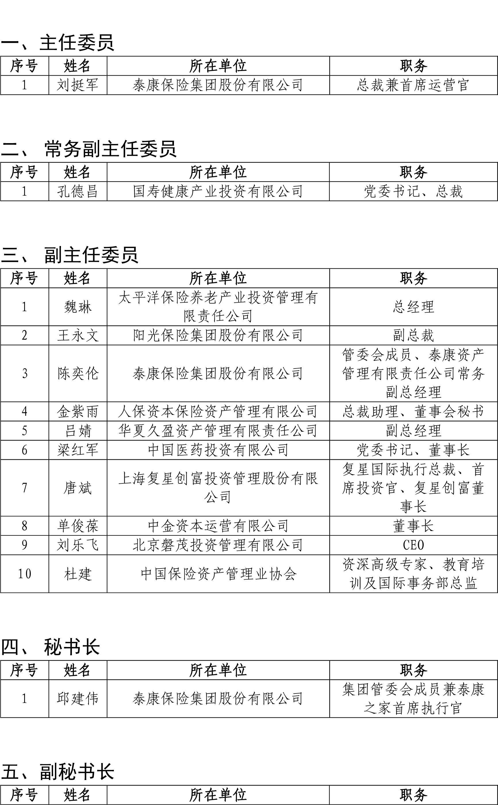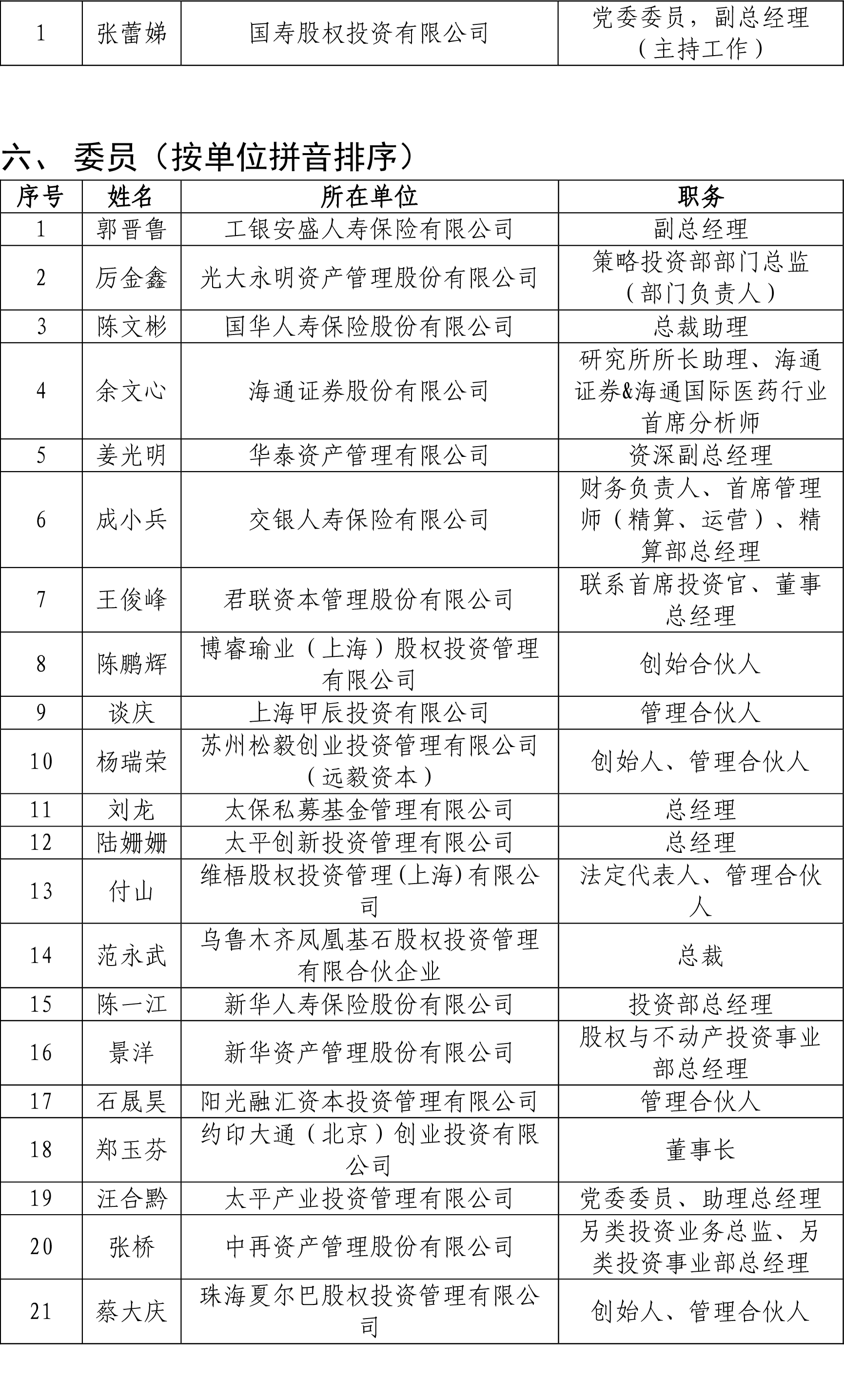 中国保险资产管理业协会第三届医疗健康和养老产业投资专业委员会名单