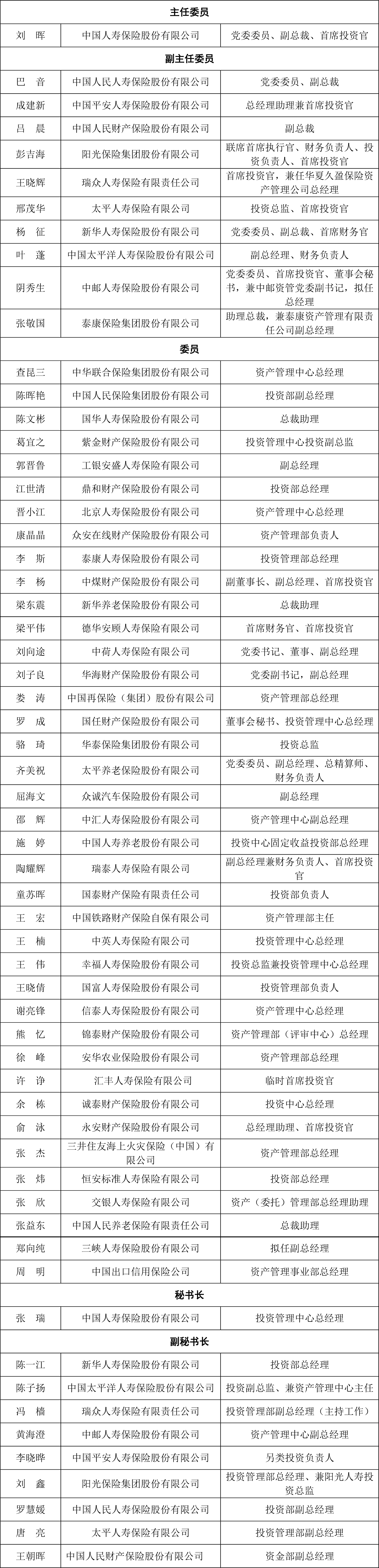中国保险资产管理业协会第三届保险机构投资者专业委员会名单