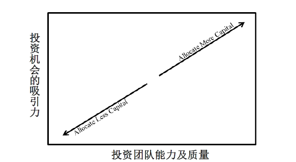 MIT看重的是投资团队的质量。采用自下向上的框架,将资产投向最具吸引力的投资机会和(内部评估)信誉度最高的管理人。如果团队质量、能力都很优秀,如下图,越往右,就表示最优秀,那么资产配置时就会给这个基金经理多一点,这是非常自然的。