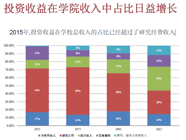 为什么是5%左右的比例呢?从MIT投资角度来看,5%加上一些通货膨胀因素等是其认为还可以在长期内能够实现的收益率。MIT的捐赠基金资源有限,希望它有计划、有步骤来花,这会通过公式来计算。