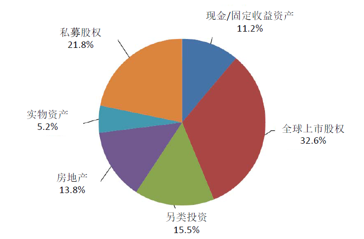 MIT的投资偏于非公开上市的、较低流动性的资产。下图是过去一个时间段某一个点上的资产配置比例,流动性好的是占比33%左右的上市股权,这里所谓的另类投资就是对冲基金,占比15.5%,高流动性的资产大概占到50%。私募股权,包括PE、VC,占到20%以上,再加上一些实物资产,这个配置也是比较高的。其资产配置组合中现金和固定收益占比较少。