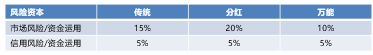 基于以上考虑,我们做出了第一次优化:考虑风险调整后的成本与收益匹配。假设不同账户市场与信用风险资本占资金应用的比例如下(资本成本率8%):