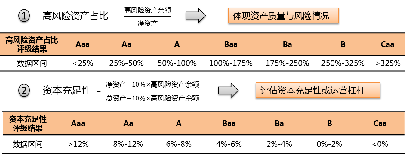 公司将评级相关指标纳入限额,进行定期追踪与预警:风险偏好总体目标为维持较好的评级水平;根据穆迪评级方法论,以下两项指标体现了对投资资产风险的监控和约束: