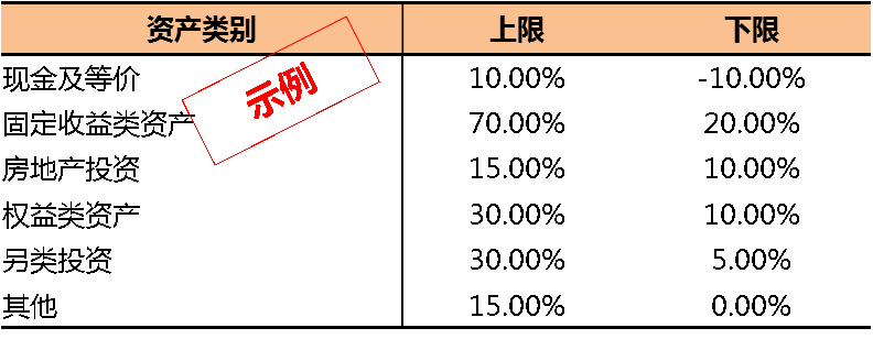 进行战略资产配置时,对风险资产设置上下限,主要约束与依据为:以偿付能力、盈利和流动性底线等风险偏好为基本约束,考虑账户特点计算最低投资收益与击穿概率的要求,设置风险资产配置比例的上限与下限,有针对性的进行资产配置。以下是一个示例: