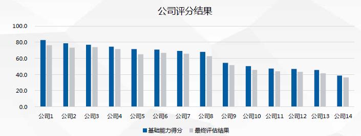 第一轮总共有14家公司参加了能力自评估和量化评估测试,基础能力得分最高分是82.7分,最低分是38.9分,平均分是62.6分,中位数是68.6分。基础与环境方面,得分较高的公司纵向能够形成“董事会-资产负债管理委员会-执行委员会-执行部门”的四个层次,横向能够形成“资产端和负债端业务部门-风险管理部门-内审部门”的三道防线。得分较低的公司在组织架构的设置、制度落地实施和人员配备等方面都有比较大的提升空间。控制与流程方面,在沟通协调机制、分账户管理、资金划拨机制以及内控流程方面符合评估标准。不少公司在偏离资产配置政策后的管理程序、产品开发时是否考虑资产负债状况的影响、以及评估业务活动对资产负债状况的影响等方面有待提高。模型与工具方面,各项目组公司得分差异较大,该部分得分总计20分,最高分与最低分相差16.8分。原因主要有两点:一是大型公司与中小型公司技术实力差距较大。大型公司在资产负债管理和资产配置模型与工具的实现水平和建模能力方面较为成熟。二是部分公司在模型与工具方面没有相关制度,由于评估标准从“制度健全性”与“遵循有效性”两个方面进行评估,没有相关制度的公司得分较低。