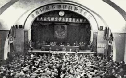 1945年4月至6月,中国共产党第七次全国代表大会在延安杨家岭中央大礼堂召开。出席大会的正式代表547人,候补代表208人,代表着全国121万名党员。这次大会负有总结以往革命经验、迎接抗日战争胜利和引导中国走向光明前途的任务。
