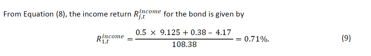 income return是根据应计利息来计算的。它的计算方式一般来说就是票面利息。票面利息是在某一段时间,比如说在时间t到t-1这段时间内,我们一般算的这个收益率就是指在这一段时期的一个收益率。