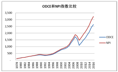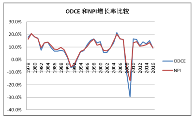 一个是美国开放式核心房地产基金的指数(ODCE),另外一个是核心的房地产指数(NPI)。这两个指数可以看长周期从1978年开始到现在,总体美国房地产趋势非常明显,短期是有波动的,但长期稳定增长。可以看到唯一一个明显的下降发生在2008年的金融危机。