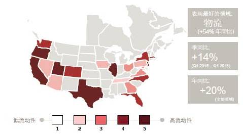 从该图看,深色是流动性最高的,浅色是流动性最低的,还是以传统的东西海岸、德州,东部的芝加哥是流动性最好的。资金来源目前是美国房地产资金来源,除了美国以外,主要是加拿大、新加坡、中国、挪威。