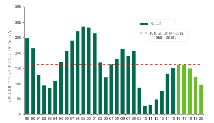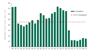 目前供应量明显低于历史平均水平,即使这么低的供应量,吸纳量还是非常低迷不振。