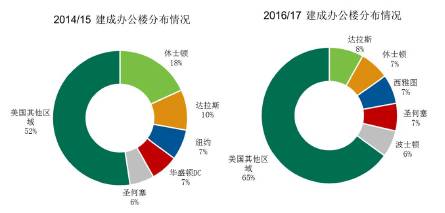 这两个饼图,主要是投机型写字楼的开发,变得更加广泛。有更多的区域开发商在比较乐观地修建一些还没有租金的写字楼,这个会让我们有一点警觉。