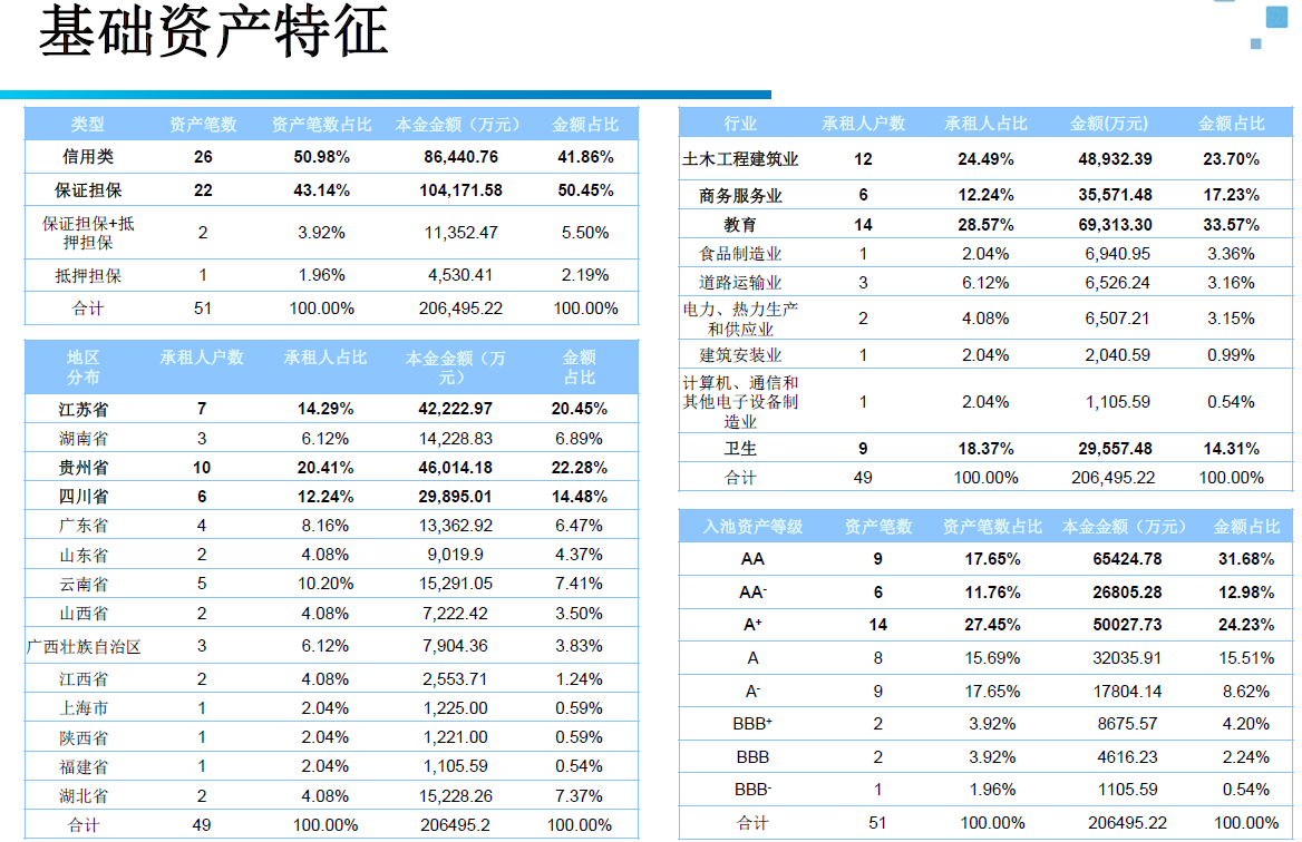 如上图,评级分析框架包括基础资产、交易机构、现金流、信用风险、参与方各方面。
