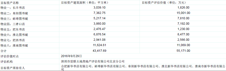 (2)物业原所有权人:合肥新华书店、蚌埠新华书店、阜阳新华书店、淮北新华书店、淮南新华书店。