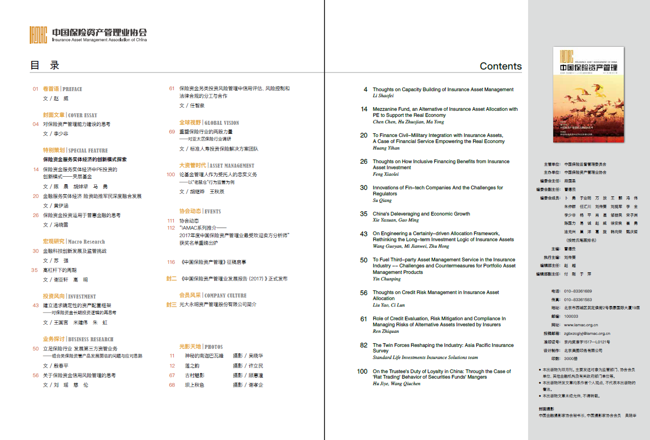 由中国保险资产管理业协会(以下简称“协会”)主办的行业性出版物《中国保险资产管理》(双月刊)2017年第四期/总第十二期于近日出版。