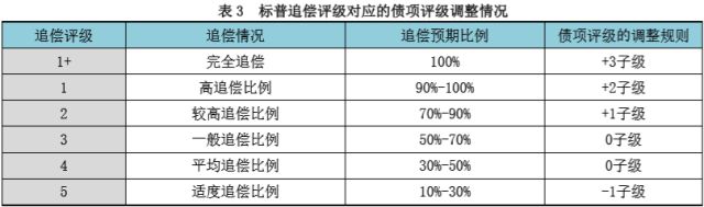 采用以上级别调整标准,可以有效弱化根据资产类别以评估价值为基础打折的处理方法的弊端,避免严重高估或低估增信效果,且有较强的可操作性,未来将会积累数据对上面标准进行验证、调整。