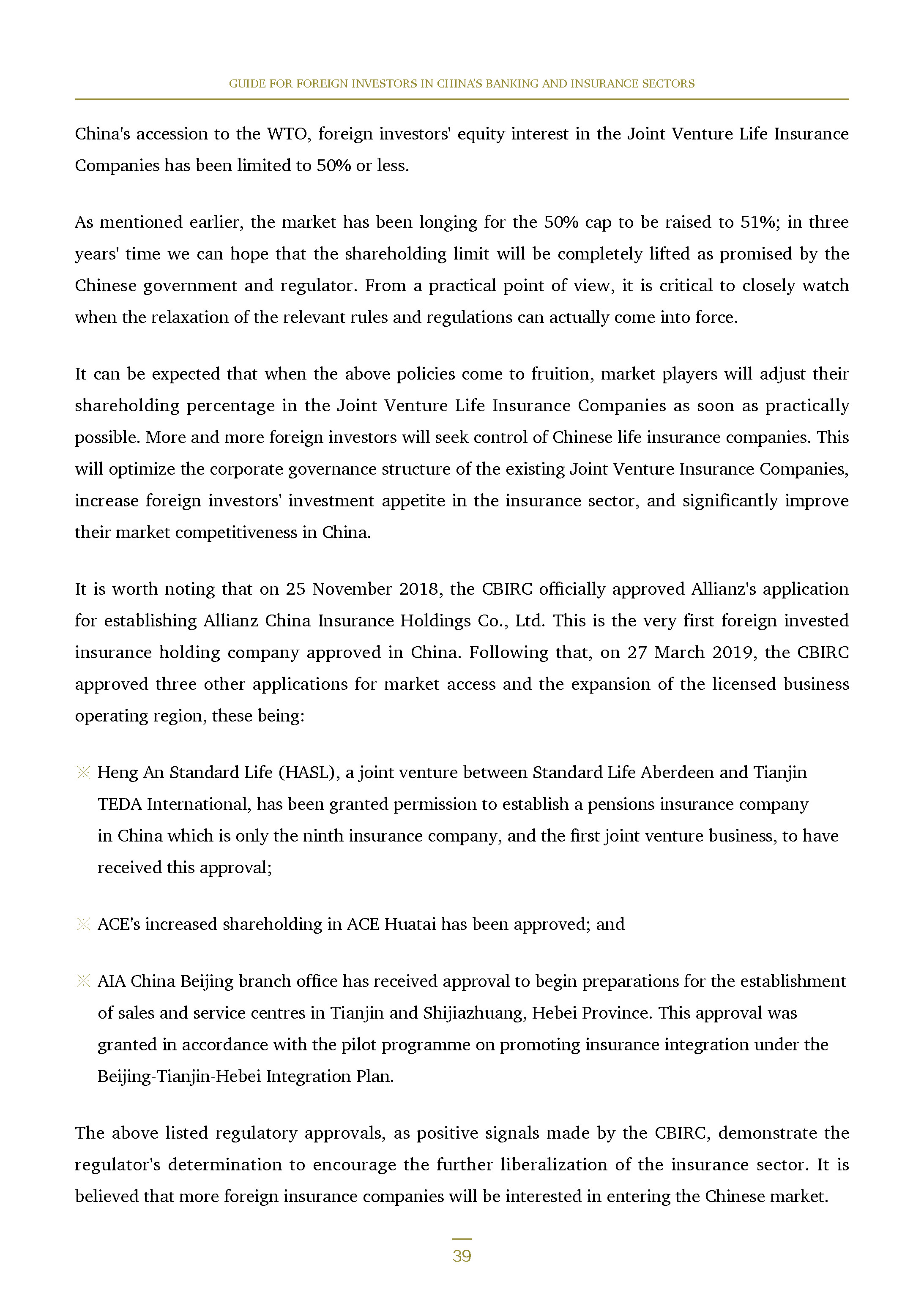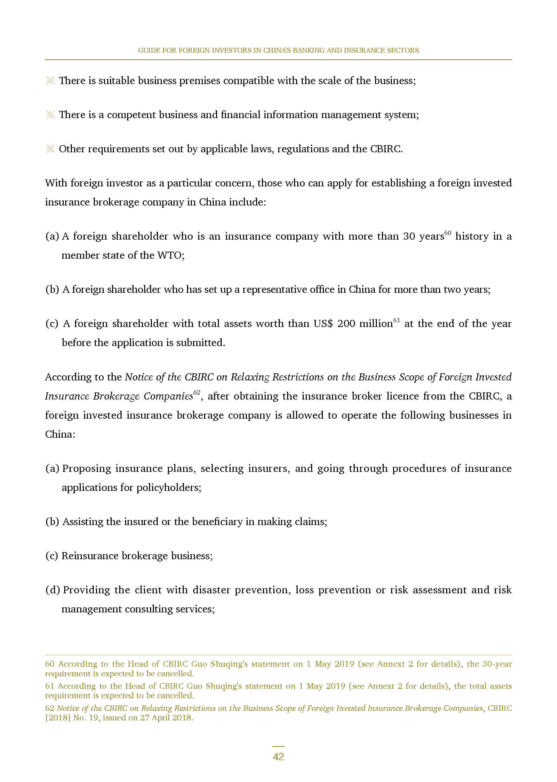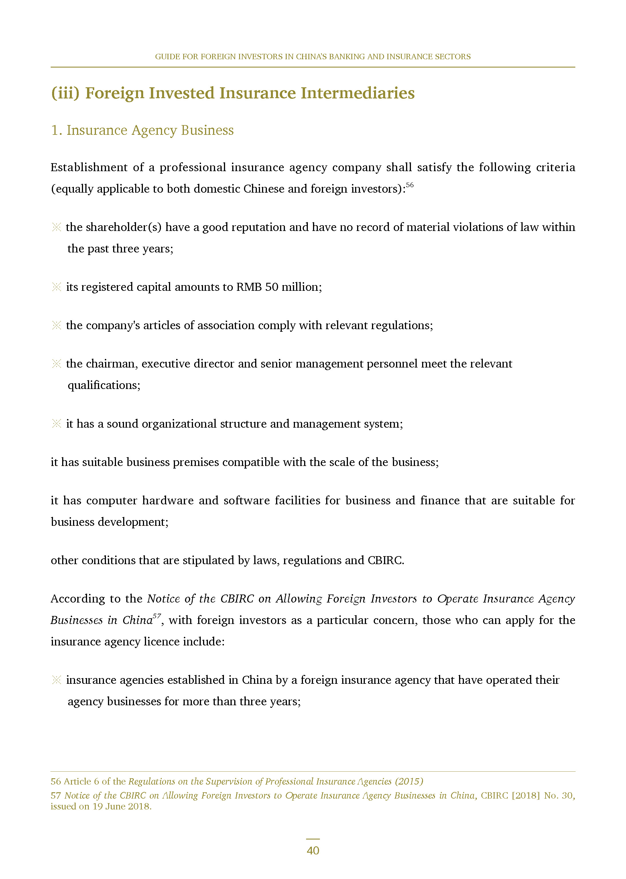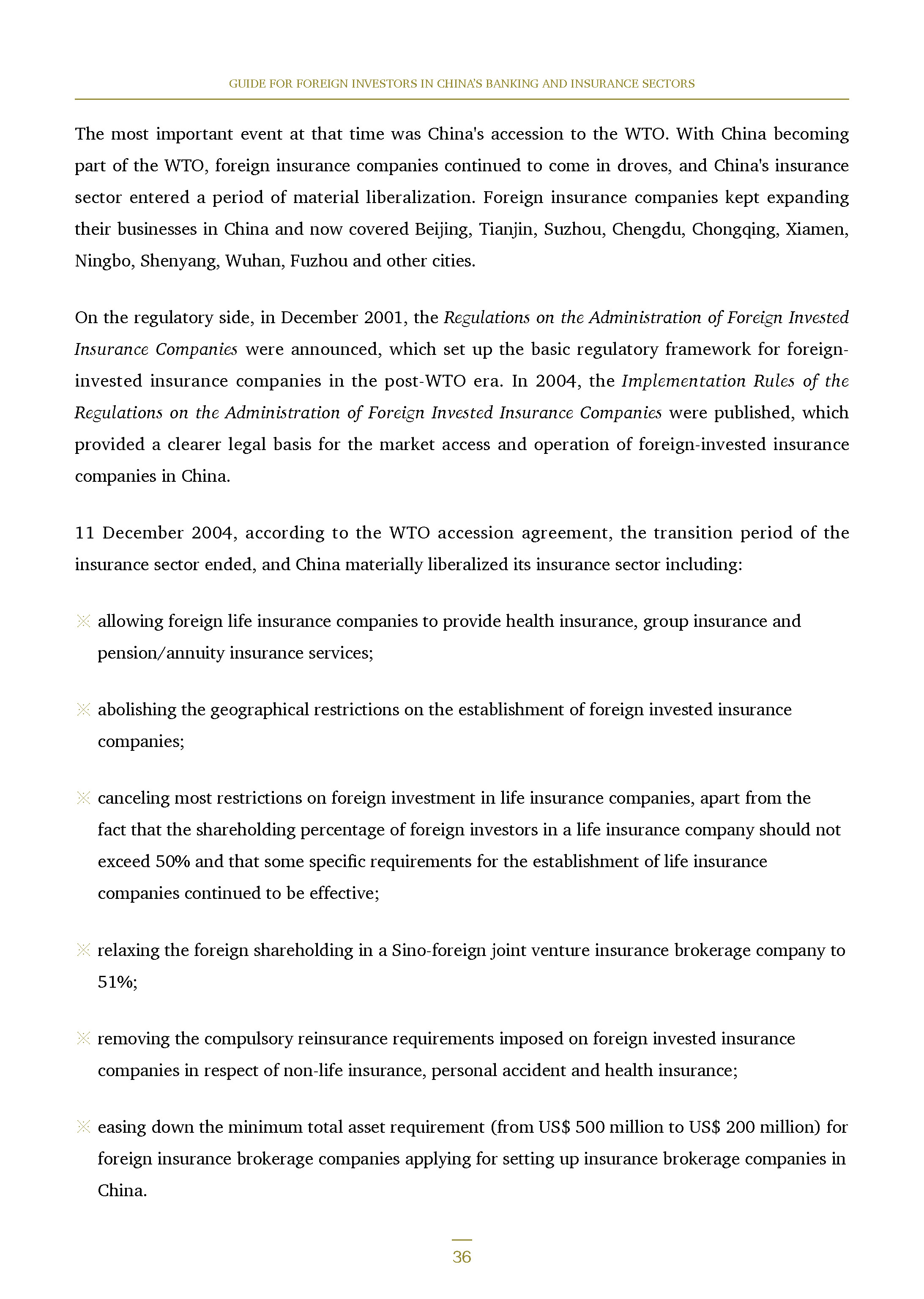 为进一步加强中国保险资产管理行业的国际化建设平台,协会组建了IAMAC国际专家咨询委员会并于2019年5月21日在北京召开委员会成立大会,同时,在当日举办了第一届IAMAC资产管理发展论坛(以下简称“论坛”)。在本届论坛上,协会隆重发布《中国银行保险业外资机构投资指南》(以下简称“指南”), 旨在满足会员单位及外资机构对中国银行、保险业对外开放政策及相关业务规则了解的需求。《指南》(中英文版)的编辑工作得到了通力律师事务所的大力协助,结合了各金融监管机构已经公开颁布的相关政策及业务规则,从银行业和保险业对外开放的历史、行业的监管政策、投资及外汇税收政策、在中国设置机构的要求及申请流程以及持续合规义务等八个方面进行了阐述,从实际操作的角度作了较为全面的政策介绍, 为外资机构了解中国相关政策提供了较为完整的信息借鉴。现将《指南》中英文版在协会公众号上逐期发布,共八期,以飨读者。