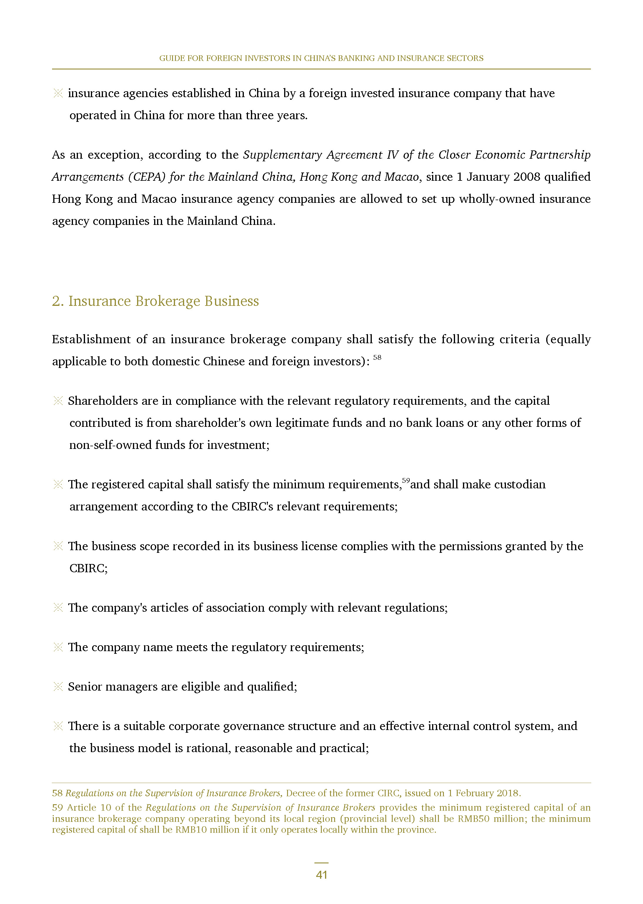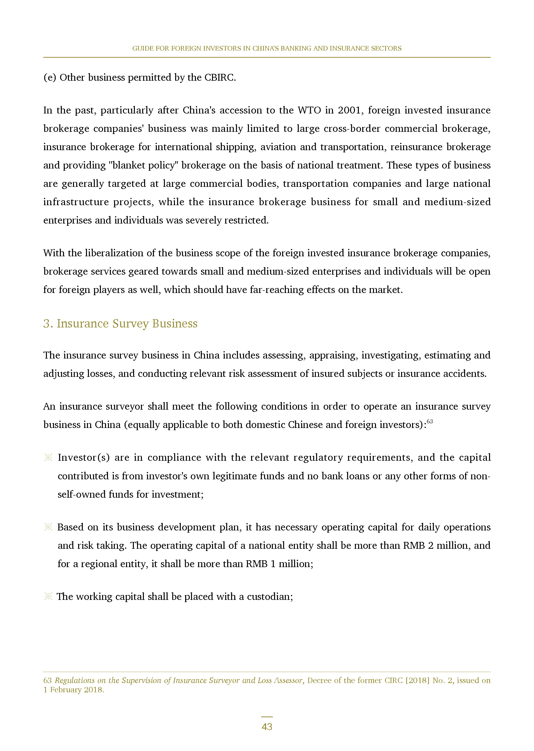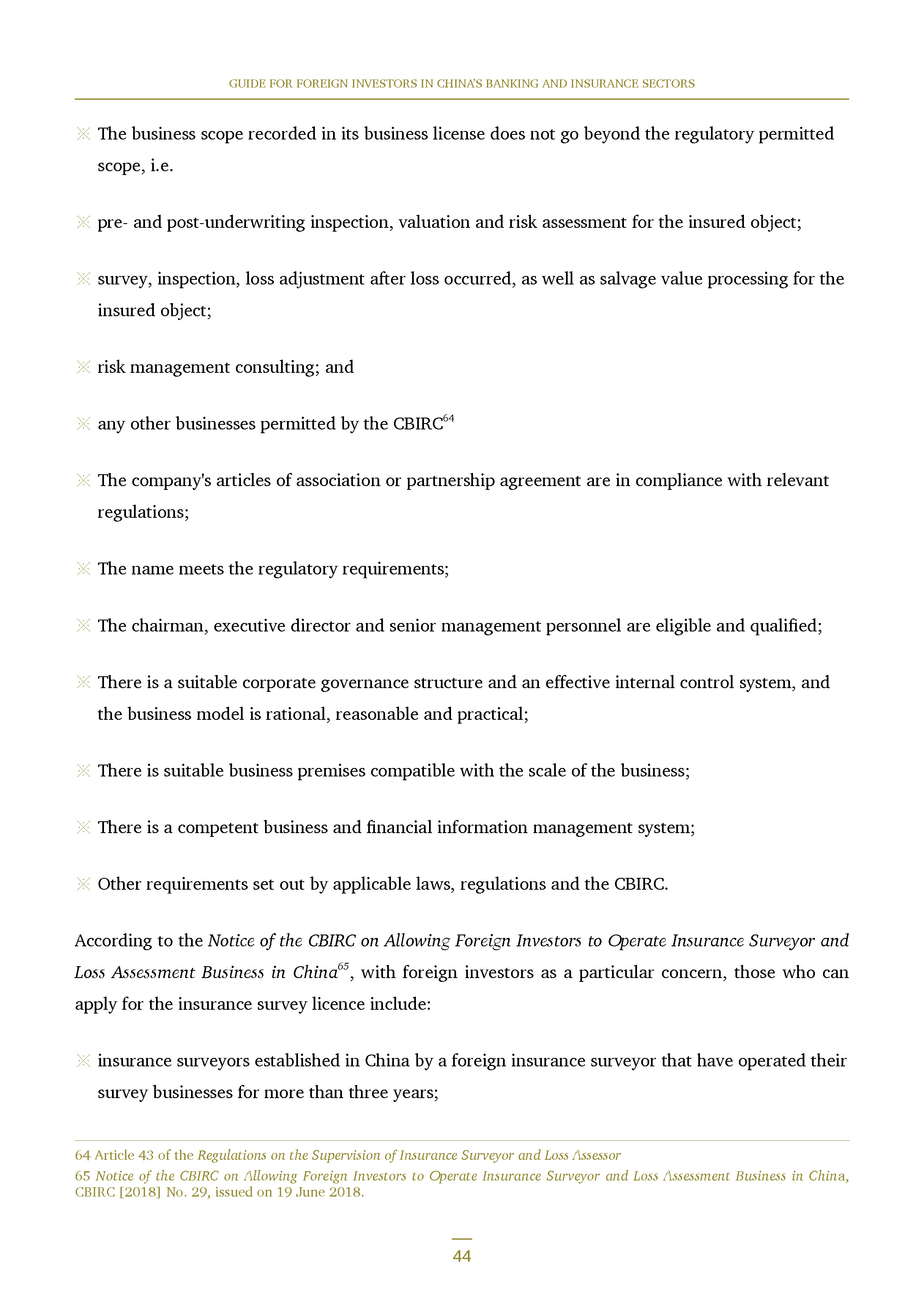 本指南仅供参考使用,并不构成对任何具体问题的法律、投资或其他专业建议或意见。本指南中涉及的监管规定、资质要求、合规义务、办事流程等均为依据截至本指南出具之日有效的法律、行政法规、规章和规范性文件整理而成,以便外国投资者了解相关信息,但相关规定及内容仍应以相关法律、行政法规、规章或规范性文件的原文全文为准。尽管中国保险资产管理业协会和通力律师事务所已尽一切努力确保本指南中提供的信息准确无误,但中国保险资产管理业协会和通力律师事务所不对任何错误、遗漏或误导性陈述承担任何责任。除非经中国保险资产管理业协会和通力律师事务所事先同意,不得向第三方提供本指南或进行商业或非商业的传播。