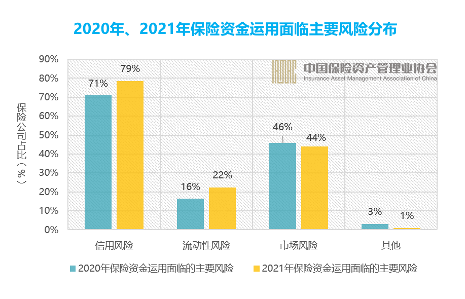 从风险类型分布看,参与调研的保险公司认为2020年和2021年资金运用面临的最主要风险为信用风险。