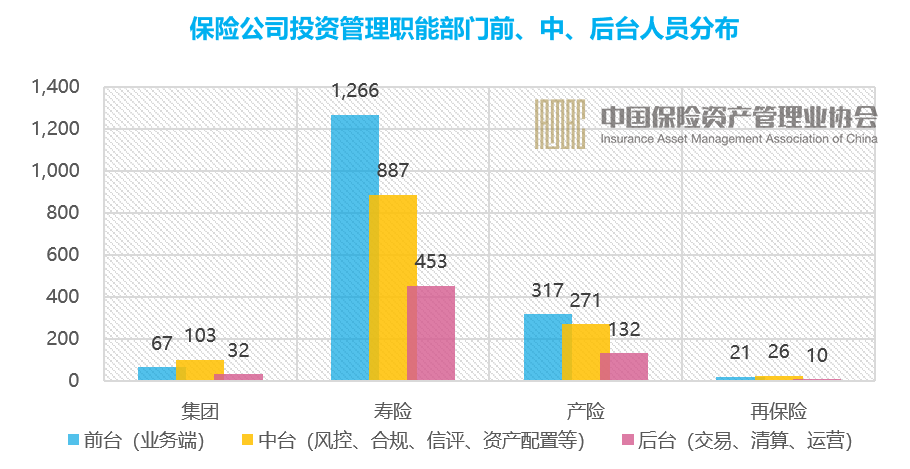 2020年,参与调研的保险公司共有3,661名投资人才,较上年增长近2%;从人员结构看,寿险、产险前中后台的梯队较为明显,集团、再保险中台人员数量占比较高。