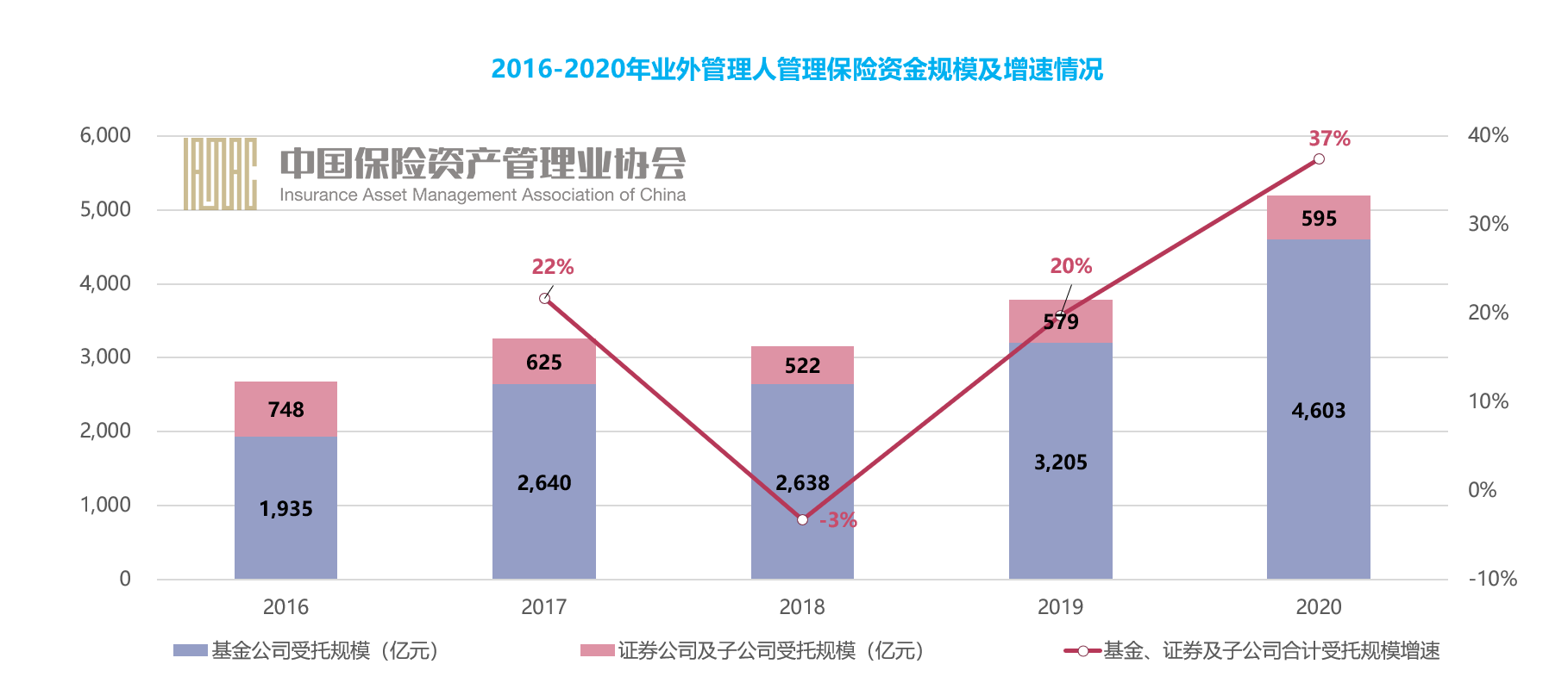 2020年,业外管理人管理保险资金规模较上年增长37%,连续两年实现较快增长。