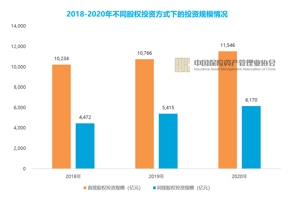 从不同投资方式来看,2020年直接股权投资和间接股权投资规模保持稳定增长,增速分别达到7%和14%。