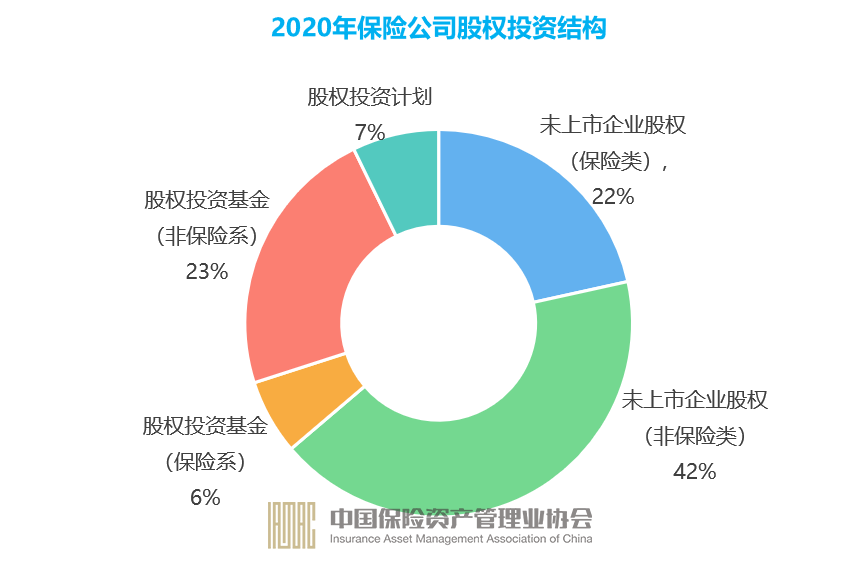 2020年,参与调研的保险公司股权投资包括未上市企业股权、股权投资基金和股权投资计划。其中,以未上市企业股权(非保险类)和股权投资基金(非保险系)为主,合计占比65%。