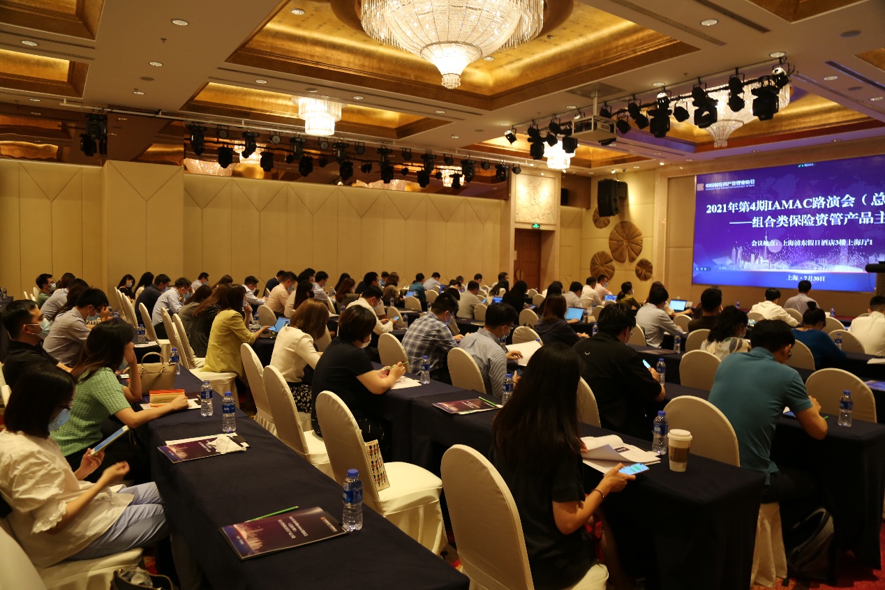 为助力投资机构寻找优质资产,营造机构间良好的合作环境,促进组合类保险资管产品的健康发展,中国保险资产管理业协会(以下简称“协会”)于2021年7月30日在上海举办“2021年第4期IAMAC路演会(总第5期)——组合类保险资管产品主题”。本次会议由协会公开市场与境外业务部总监赵越主持。路演会以组合类保险资管产品系列为主,由中国人保资产管理有限公司固定收益部投资副总监、第三方业务负责人黄云强,平安资产管理有限责任公司权益产品团队负责人尹骏,建信保险资产管理有限公司权益投资部总经理、组合产品部总经理廖亮,太平资产管理有限公司量化投资部总经理王振州,太平洋资产管理有限责任公司权益投资部执行董事、权益FOF投资团队负责人陈宏生就组合类保险资管产品的投资策略、产品案例等进行路演。来自保险、银行、信托、证券、基金等业内外近150余位投资人士参加了会议。