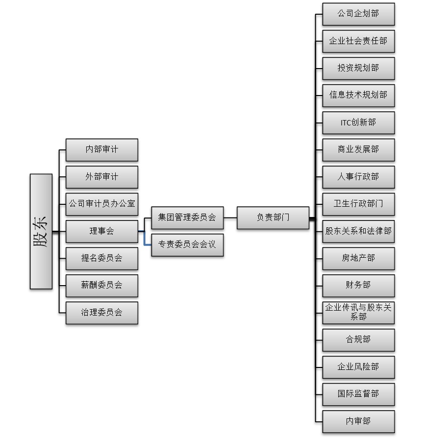 当前,公司已设15个职能部门:经营企划部、战略推进部、财务部、精算与风险管理部、资产管理部、人事行政部、信息技术部、机动车辆保险部、业务部、理赔部、再保险部、互联网业务组、合规法务部、新渠道事业部及内审部,其组织架构: