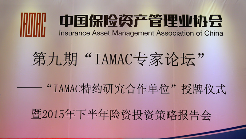 2015年6月10日下午,中国保险资产管理业协会(以下简称“协会”)在京举办第九期“IAMAC专家论坛”——“IAMAC特约研究合作单位”授牌仪式暨2015年下半年险资投资策略报告会。