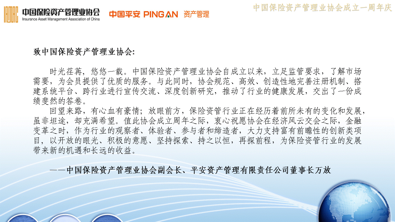 协会周年寄语——中国保险资产管理业协会副会长、平安资产管理有限责任公司董事长万放