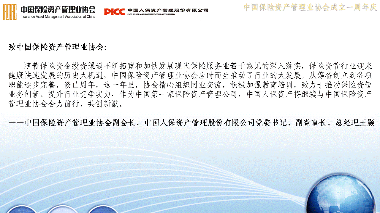 协会周年寄语——中国保险资产管理业协会副会长、中国人保资产管理股份有限公司党委书记、副董事长、总经理王颢