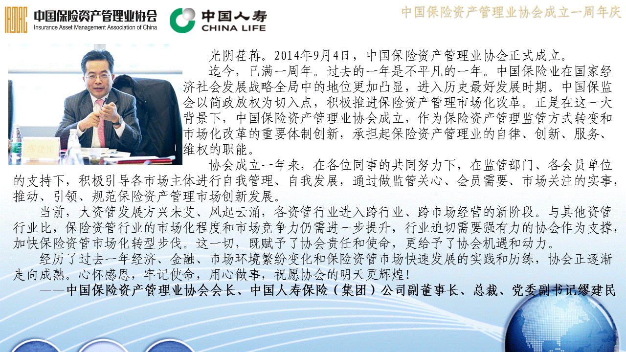 协会周年寄语——中国保险资产管理业协会会长、中国人寿保险(集团)公司副董事长、总裁、党委副书记缪建民