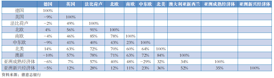 由于各国经济发展处于不同的周期阶段,在全球范围内选择经济关联性低的国家进行资产配置,有利于分散宏观经济风险(见表2)。