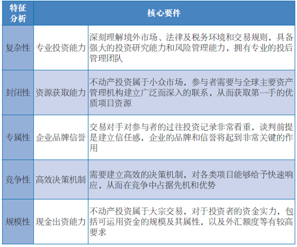 表3:境外不动产投资特征分析与核心要件