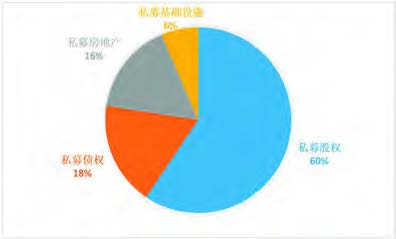 在具体私募投资项目方面,合众集团最新内部资料(截至2015年6月)显示:私募股权投资规模332亿美元,已变现项目平均内部收益率为22.9%;私募债权投资规模100亿美元,项目平均内部收益率为12.8%;私募房地产投资规模90亿美元,项目平均内部收益率为16.0%;私募基础设施投资规模36亿美元,项目平均内部收益率位16.4%。从中可以发现,私募股权投资因为其高收益的特点,在私募投资项目资金占比中具有绝对优势(见图1)。