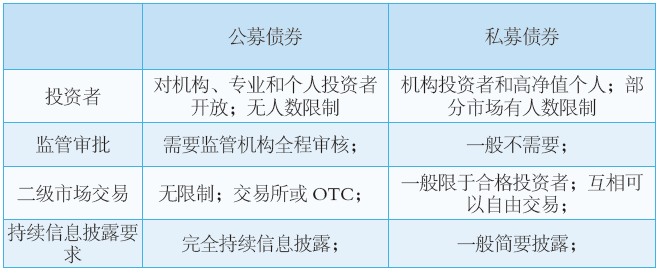 私募债券也被称为高收益债券,是指向与发行者有特定关系的少数投资者募集的债券,对象通常是专业投资机构,如银行、信托公司、保险公司和各种基金会等,其发行不采取公开制度,转让也有一定的局限性(见表1)。