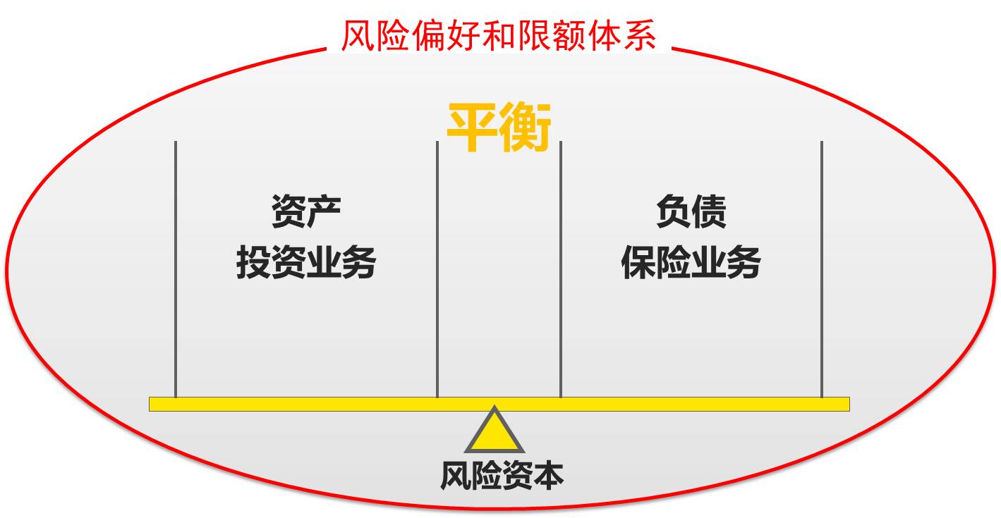 偿二代风险导向的资本要求将保险公司的投资业务和保险业务放在统一的平台上进行平衡,而不再是资产和负债“两张皮”。偿二代要求公司建立的风险偏好和限额体系,通过不同的维度和层级,给保险公司的投资业务、保险业务和资产负债管理划定了不能突破的“红线”。