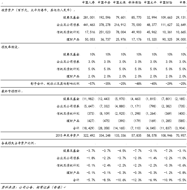 (三)即便在比较悲观的假设下,保险公司投资减值损失对净资产负面影响也仅为10%左右