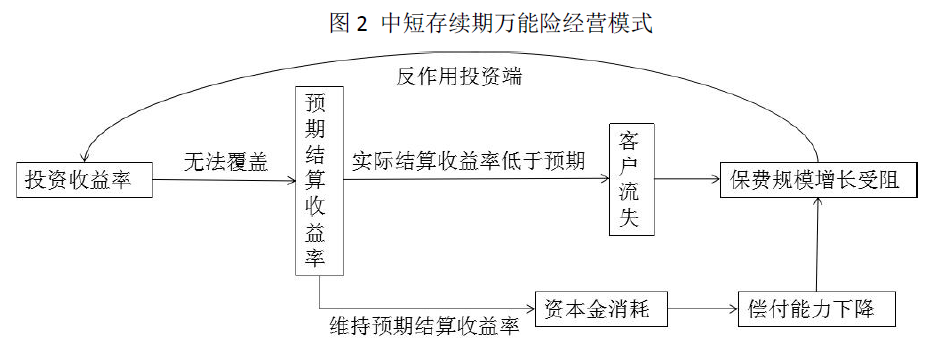 中短存续期万能险能够畅销的原因之一在于较高的预期结算收益率,尽管是“预期”收益率,但保单购买者一般当固定收益理财产品购买。一旦结算收益率低于预期,未达保单持有人预期,将会影响保费规模的增速,保费增速的下滑又反向影响投资端的资产配置及流动性管理,给投资端带来巨大的投资压力,投资收益率持续下滑又导致实际结算收益率继续低于预期,保费增速继续下滑,进入恶性循环,将严重影响保险公司偿付能力和持续健康发展。