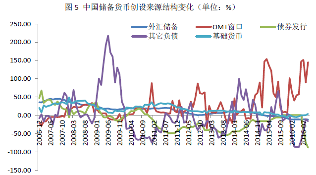 在储备货币增长投放加速的情况下,由于储备货币创设来源转向OM和窗口操作渠道,公开市场操作规模和贷款、贴现窗口的余额增长,也需要相应加速。图5“中国储备货币创设来源结构变化”表明,在四类组成中国储备货币创设的形成项目中,OM和窗口渠道增速加速上扬,业已呈现加速上升趋势。