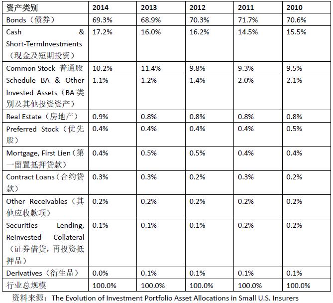 美国保险监督官协会(NAIC)资本市场局最新发布的一份关于美国小型保险公司的专项报告(The Evolution of Investment Portfolio Asset Allocations in Small U.S. Insurers),分析了美国小型保险公司2010-2014年间的资产配置情况,重点关注了2013年到2014年这两年间的投资模式及投资重点的变化,为我们提供了非常详实且具参照意义的行业信息。