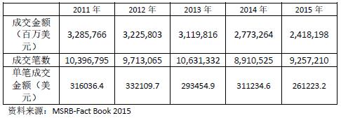 图7:2012-2016年MBS日匀交易规模(单位:百万美元)